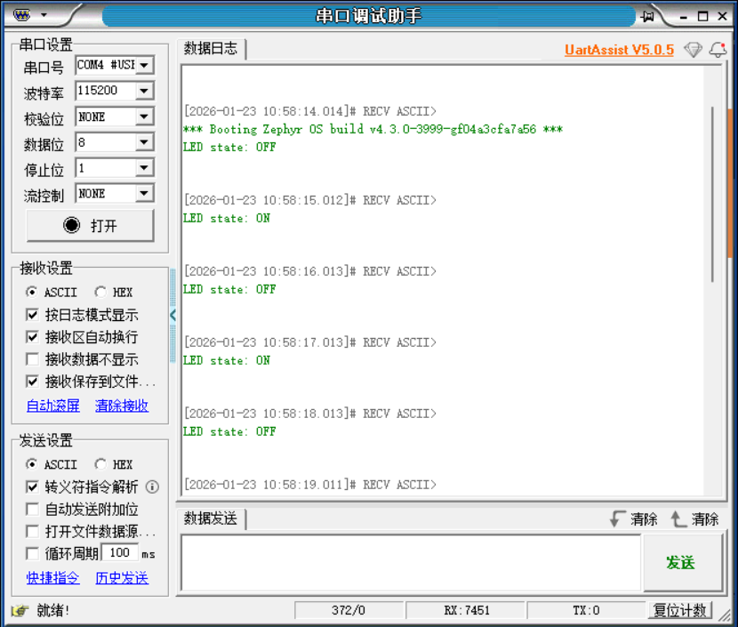编译, 烧录, 测试如下